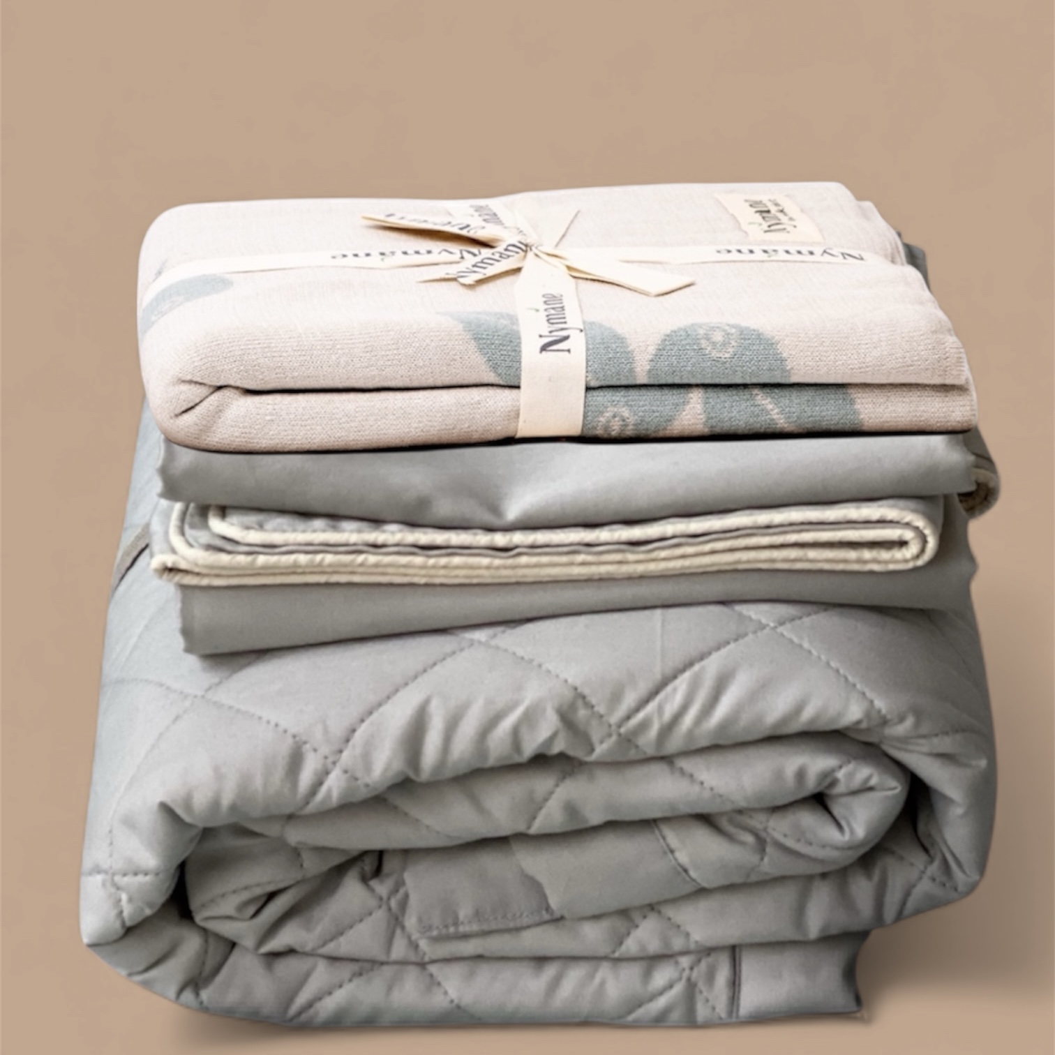 La babyen vugges i myke bølger fra Nymåne. Unik kvalitet som lages av premium, økologisk bomull, med lange fibre, høy trådtetthet og ekstra fine tråder. Designet spesielt med tanke på den lille. Dette er sengetøy som puster og regulerer babyens kroppstemperatur. Produsert på etisk måte med fairtrade-bomull fra India.
