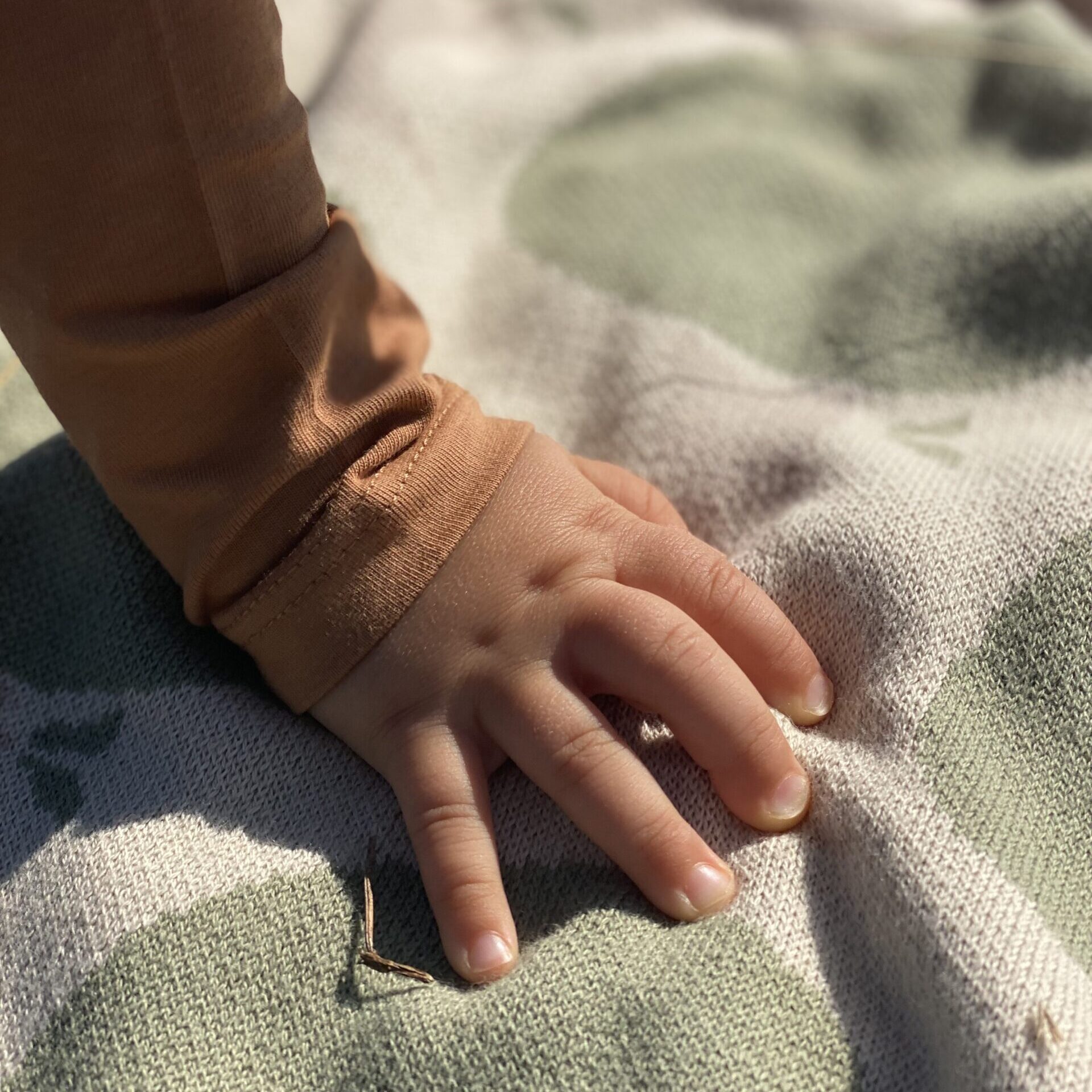Et lunt babypledd som varmer, puster og omfavner den som er liten og ny. Unikt design. Laget for de rolige stundene – og for leken, etterhvert som barnet blir større og kan ta med pleddet i både kos- og lek. Laget av 100% økologisk bomull.