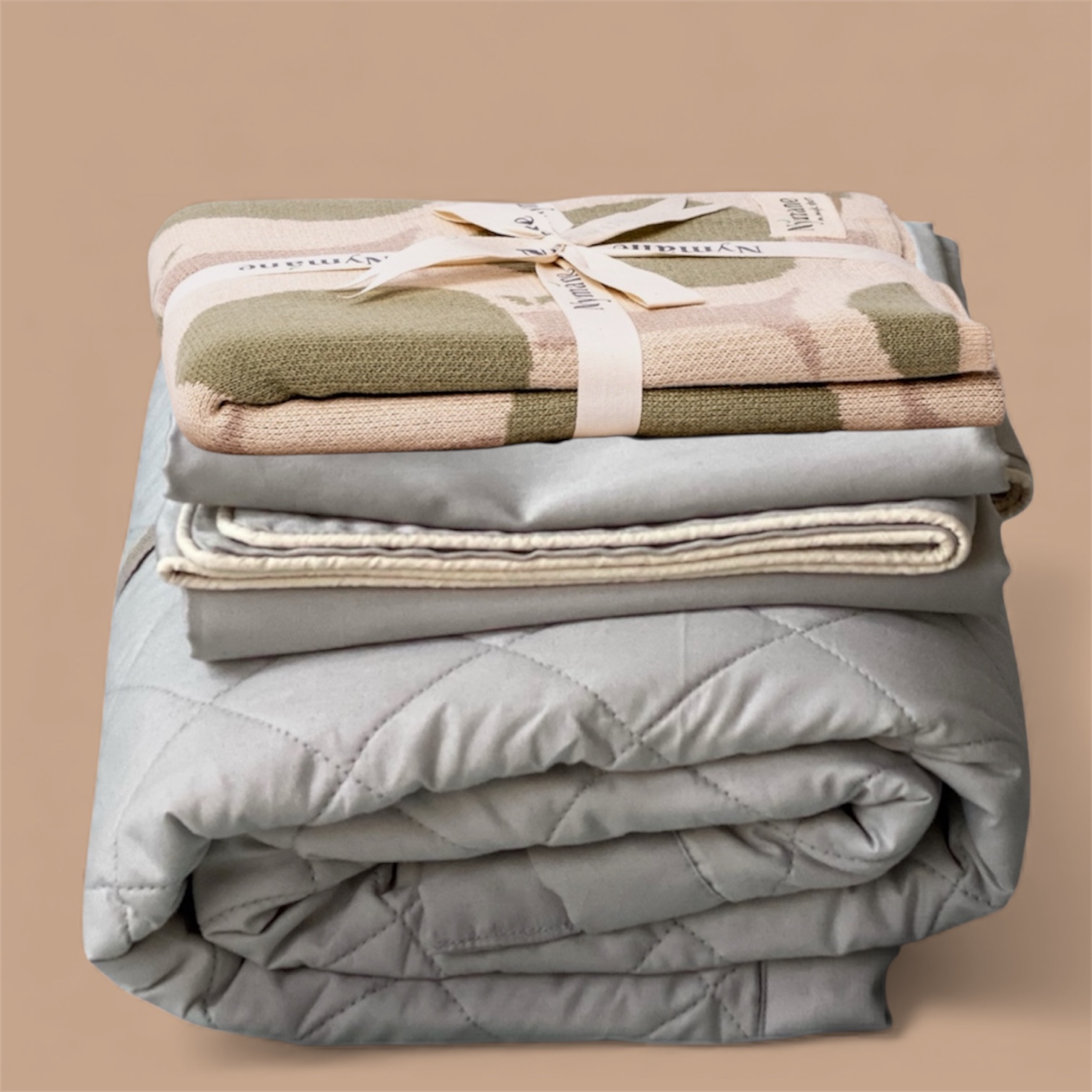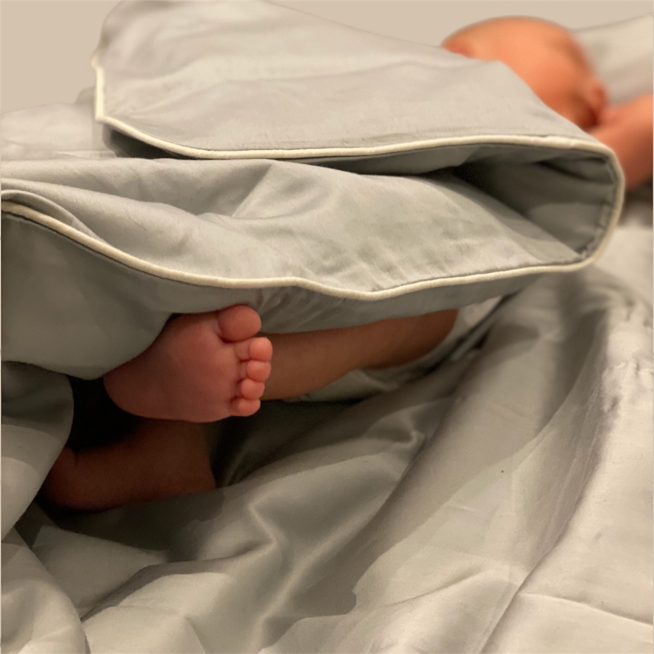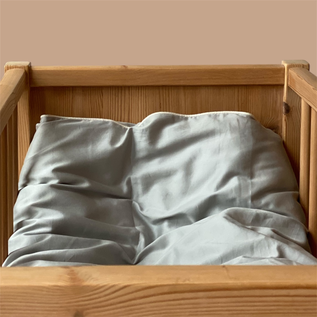 La babyen vugges i myke bølger fra Nymåne. Unik kvalitet som lages av premium, økologisk bomull, med lange fibre, høy trådtetthet og ekstra fine tråder. Designet spesielt med tanke på den lille. Dette er sengetøy som puster og regulerer babyens kroppstemperatur. Produsert på etisk måte med fairtrade-bomull fra India.